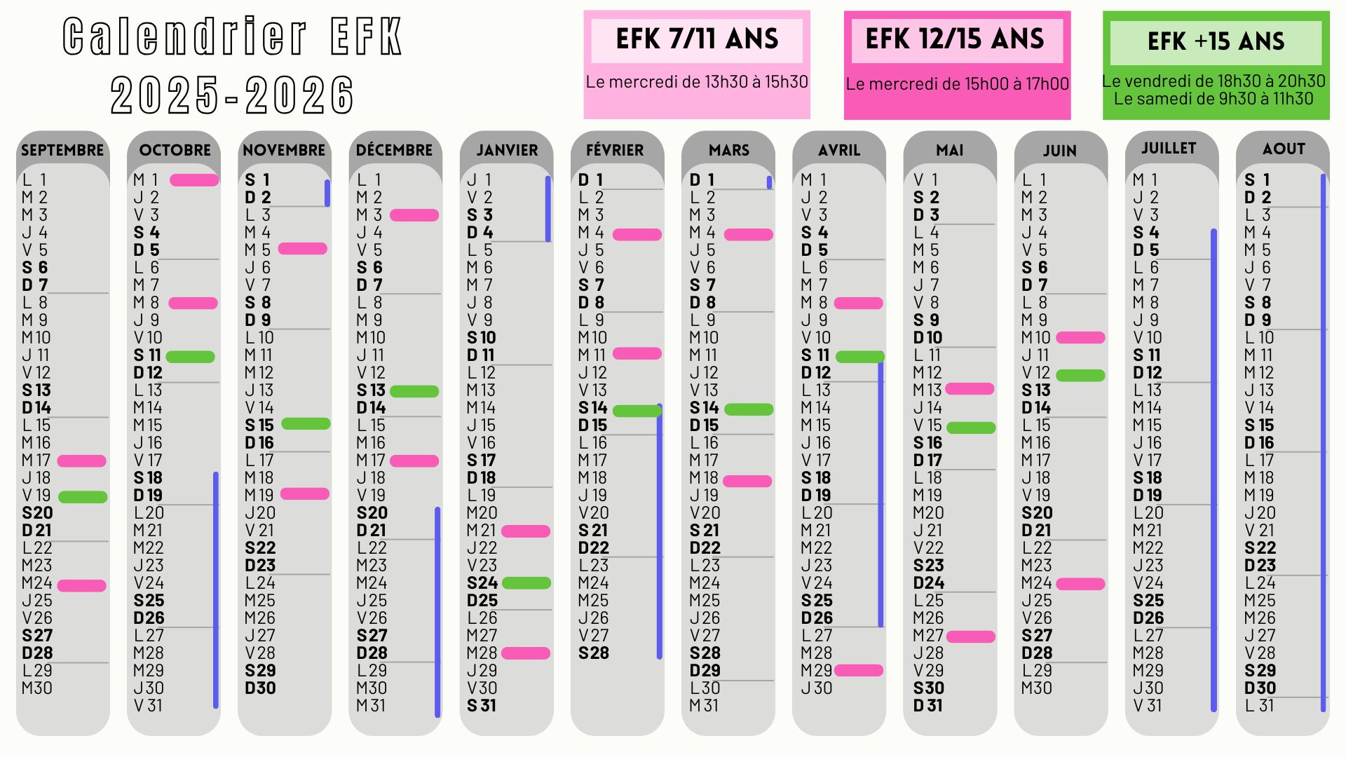 Places limitées – voir planning en bas de page